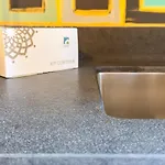 ホテルの客室には、食器棚、食器棚 とテレビにが備わっています。